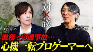 2017年、梅原大吾がオーガナイズする十本先取の聖戦「獣道」がスタートした。第四回収録は、当時ウメハラと並び称された伝説のプレイヤー“ヌキ”ことオオヌキ氏をゲストに招き、自身が参戦した「獣道」の舞台からの景色、そして白熱の対戦カードの数々を語り合いました。